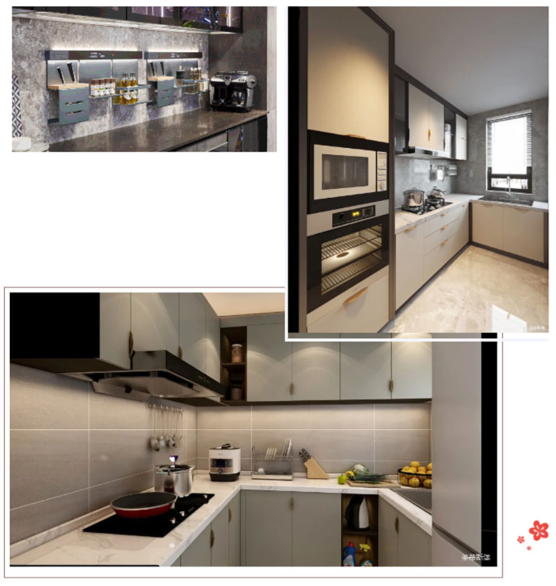 光有頂部主光源是不夠的,因為身體和櫥柜的遮擋會造成操作區(qū)陰影。這時候就需要安裝水槽、櫥柜區(qū)的光源作為補充輔助照明,使光線集中照明,讓使用區(qū)域更清晰。