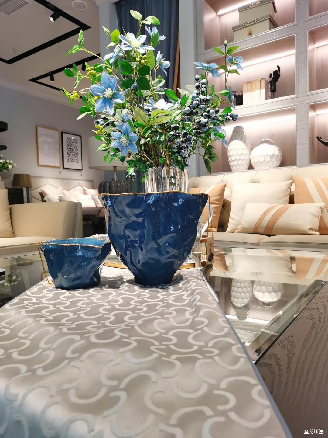 中國傳統(tǒng)陶瓷藝術(shù),尤見裝飾匠心。表面凹凸,深淺海藍(lán)交錯(cuò),倒映出海面迎風(fēng)起波的場(chǎng)景,深邃沉靜。
