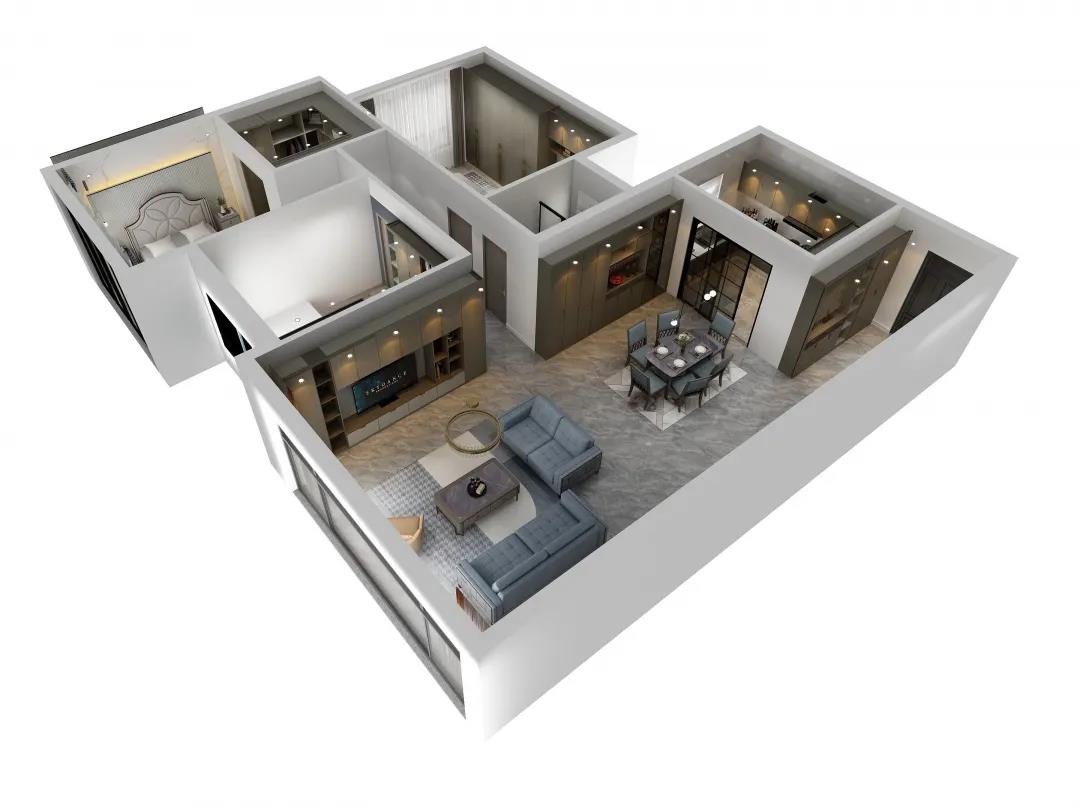時尚簡奢風格榻榻米設(shè)計,驚艷不止于顏值。客臥沿用“L型”定制設(shè)計,不同質(zhì)感的色塊與連貫的流線,對定制儲物柜進行分割,衍生出一個時尚而低調(diào)的睡眠空間。封閉式儲物柜配合著玻璃展示區(qū)域,為居者帶來超大收納空間的同時,更多的是引領(lǐng)時尚簡奢的生活!