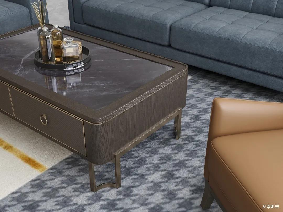 霧霾藍低飽和的沙發(fā),沿用了蒙德里安的幾何設(shè)計美學,兼容了雅致與時尚的風范,在平靜的生活中表現(xiàn)出獨特的藝術(shù)骨感,滿足我們對精致生活的精神追求。