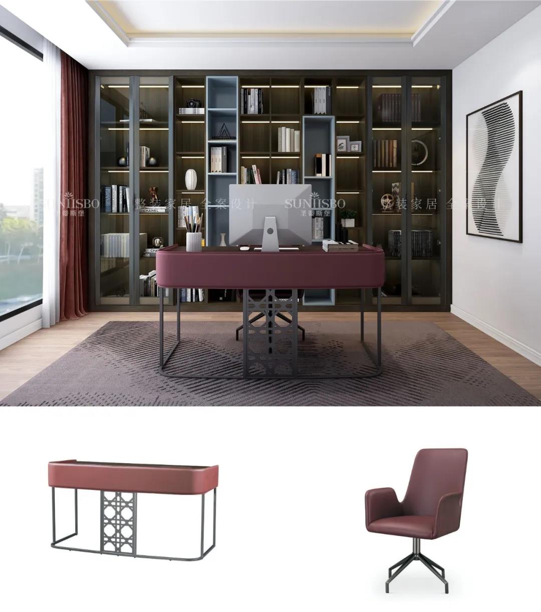書房用定制柜解決了一面墻的設(shè)計,沒有夸張的色彩裝飾,簡潔的柜體與墻面搭配起來顯得十分精致整潔,透明的可視區(qū)域從視覺上擴大了空間感。閑暇時光,拾一本書,于書房,將生活與工作區(qū)分開來。