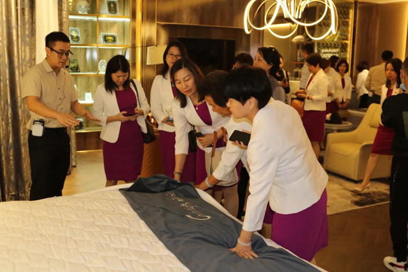 嘉賓們感受著夢(mèng)凱莎床墊帶來的柔軟舒適感,她們紛紛體驗(yàn)了夢(mèng)凱莎床墊的透氣性與科技感,對(duì)夢(mèng)凱莎的智能化系統(tǒng)有了更深入的了解。
