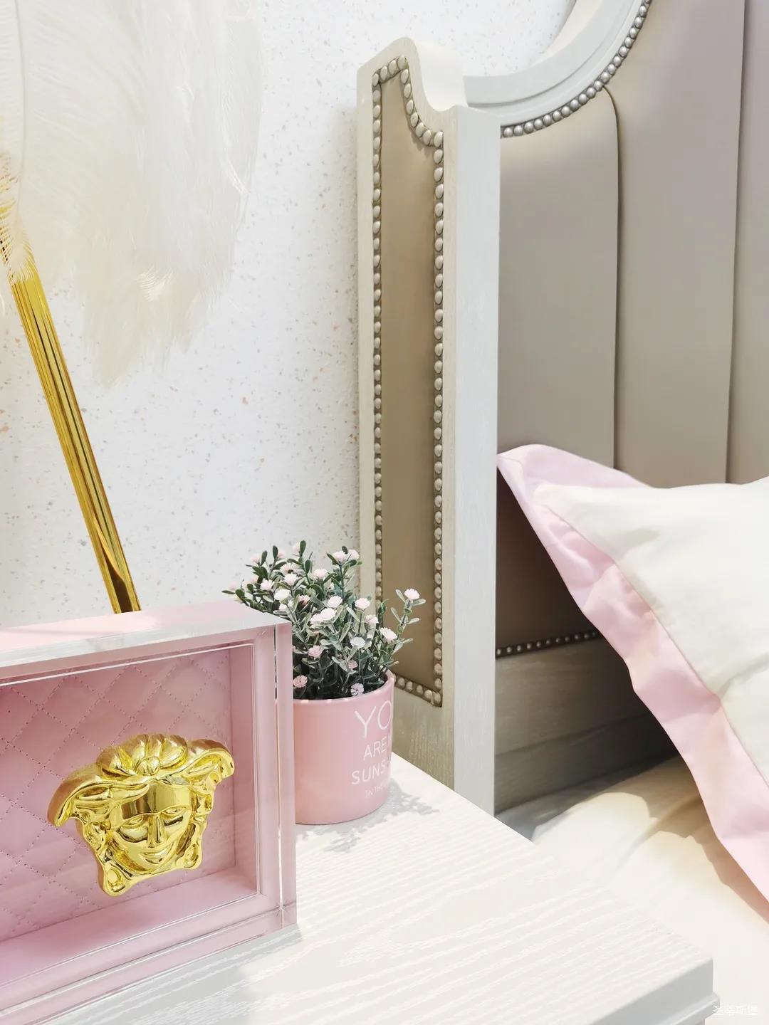 少女粉軟包床屏搭配仙氣十足的羽翼臺(tái)燈,讓空間顯得尤為夢(mèng)幻。功能與顏值兼具的定制衣柜,與溫柔的空間相得益彰,簡(jiǎn)單優(yōu)雅的同時(shí)也不失童趣。