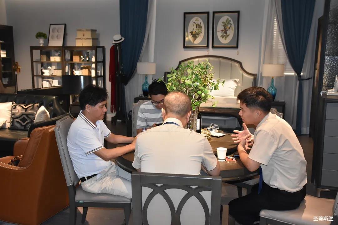 展會期間,全國家居建材連鎖巨頭—紅星美凱龍集團(tuán)鄭總一行蒞臨圣蒂斯堡營銷中心進(jìn)行參觀交流。集團(tuán)領(lǐng)導(dǎo)熱情接待,雙方進(jìn)行了深度洽談,并一起參觀了洛斯、里奧、洛卡等展廳。