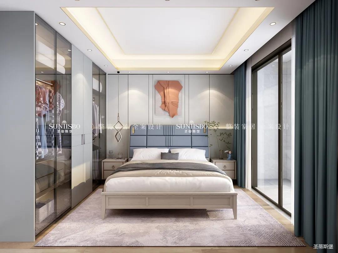 通過空間的疊加與縮放、玻璃透明屬性及肌理變化,塑造臥室簡奢均衡的氣質(zhì),也讓整個房間靜謐又典雅,給業(yè)主以無限回味的安定感和幸福感。