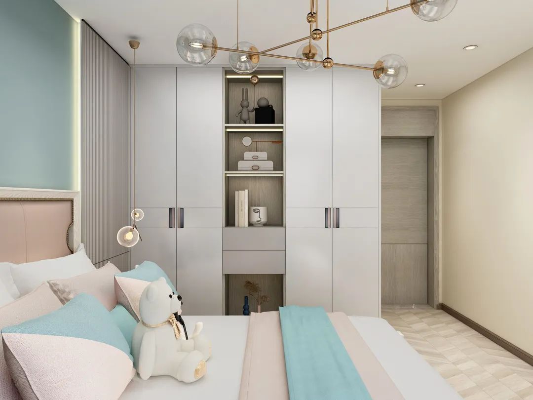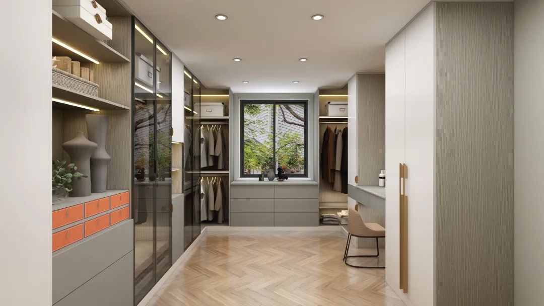 獨(dú)立衣帽間色調(diào)柔和,造型簡(jiǎn)約