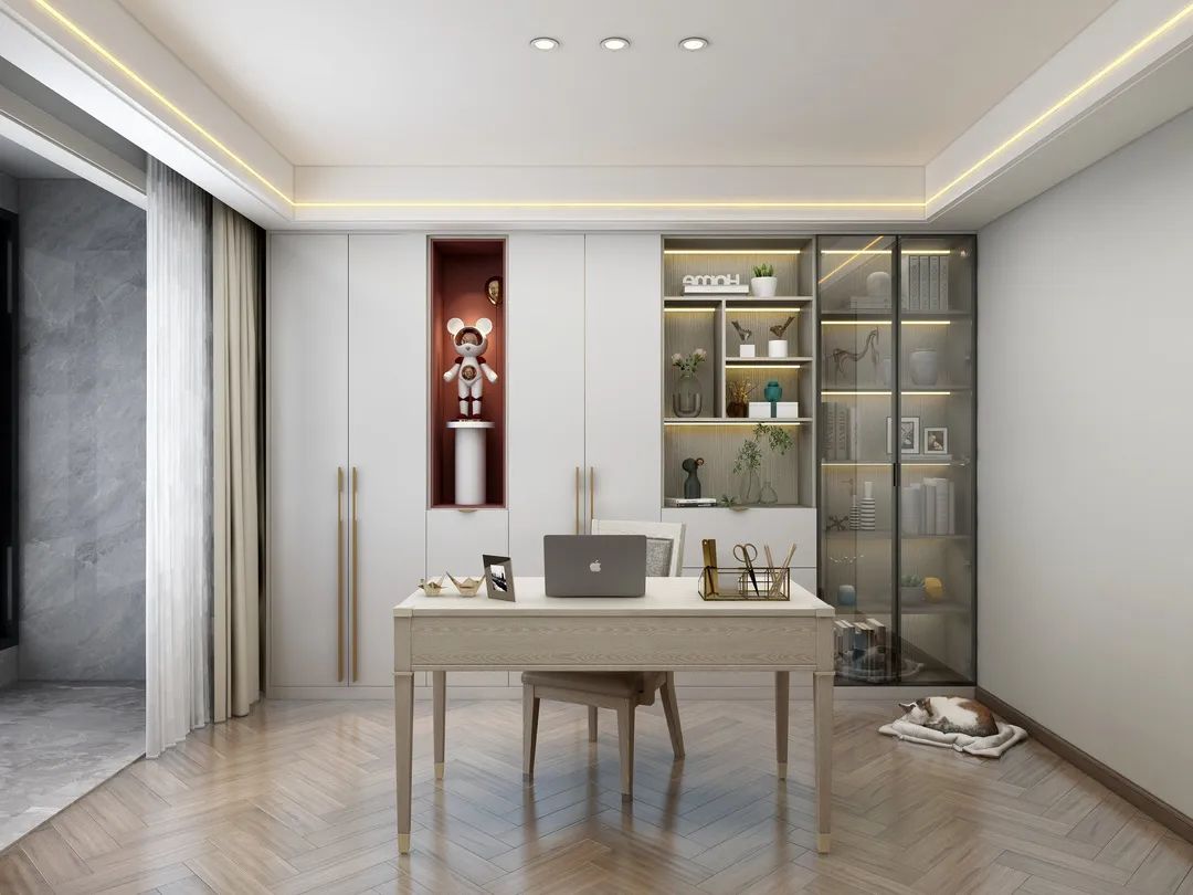 書(shū)房以和諧自然的材料,肌理化表現(xiàn)